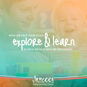 And these are just a few of the many we could list. But in the interest of time, we want to transition from the general to the specific. Rather than writing about daycares in a general sense, we want to highlight what we offer in each of our daycare programs here at Jaycees Early Learning Center. Ultimately, our goal is to help our students develop and grow in unique ways at each program. Our curriculum is shaped around the social, emotional, cognitive, and physical developments that take place during each age range, so your child will be met with the correct learning materials for their educational arc!